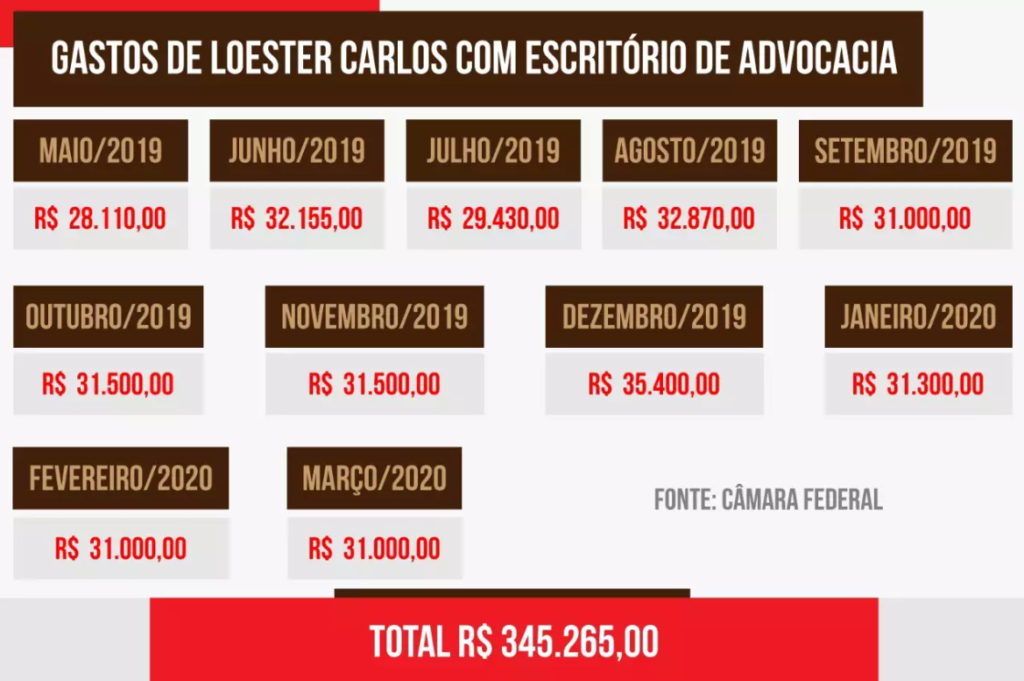 Pelo acompanhamento do uso mensal da cota dedicada a cada parlamentar, o escritório mencionado recebeu valores do gabinete de Loester de maio do ano passado a março deste ano.